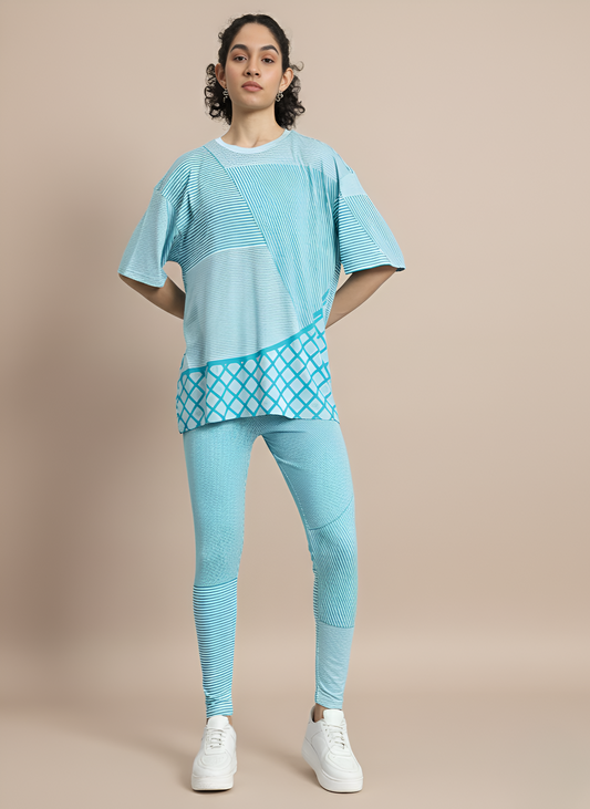 Aqua Hand Printed Embroidery Detail Co-ord Set