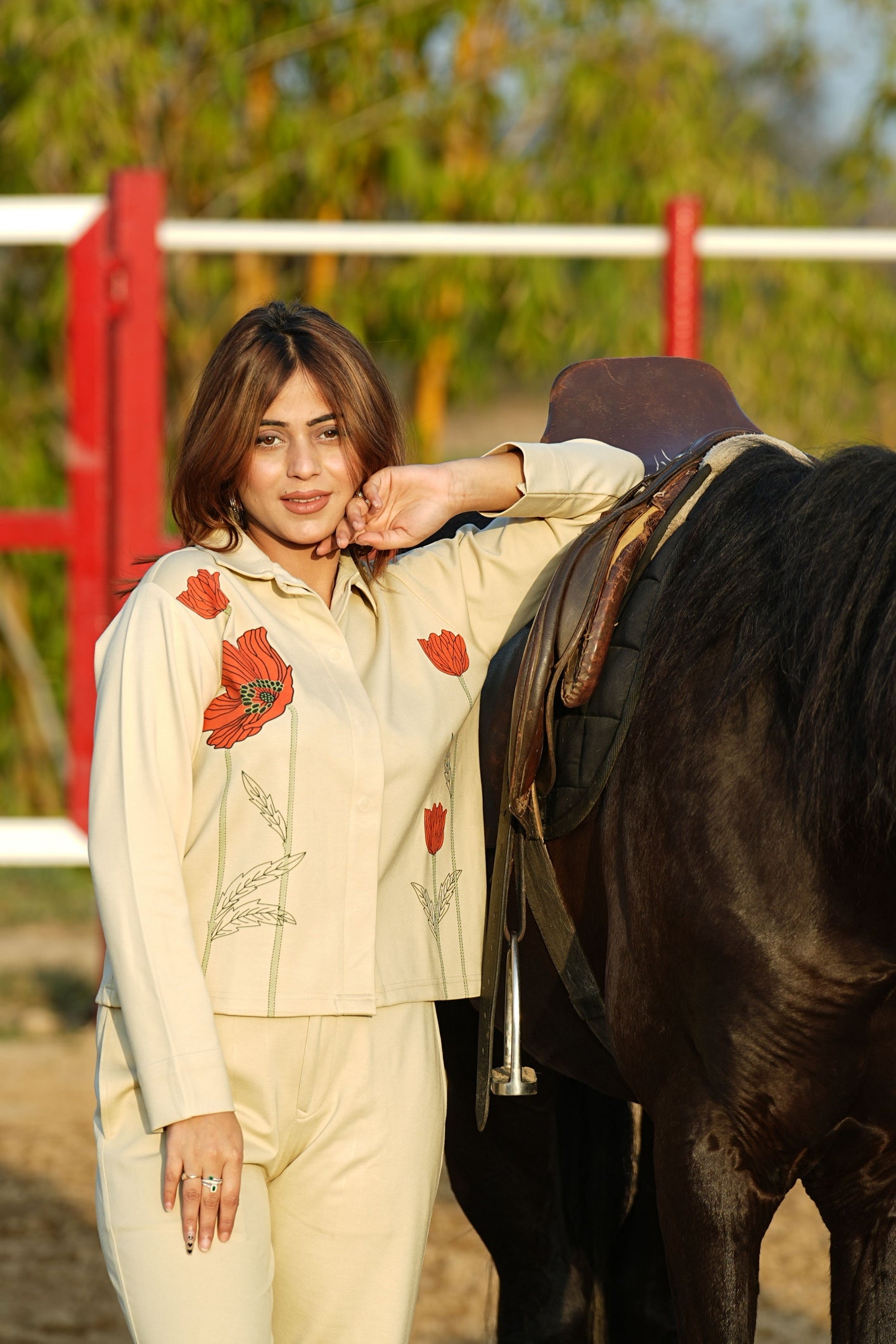 Beige Floral Highliting Co-ord Set