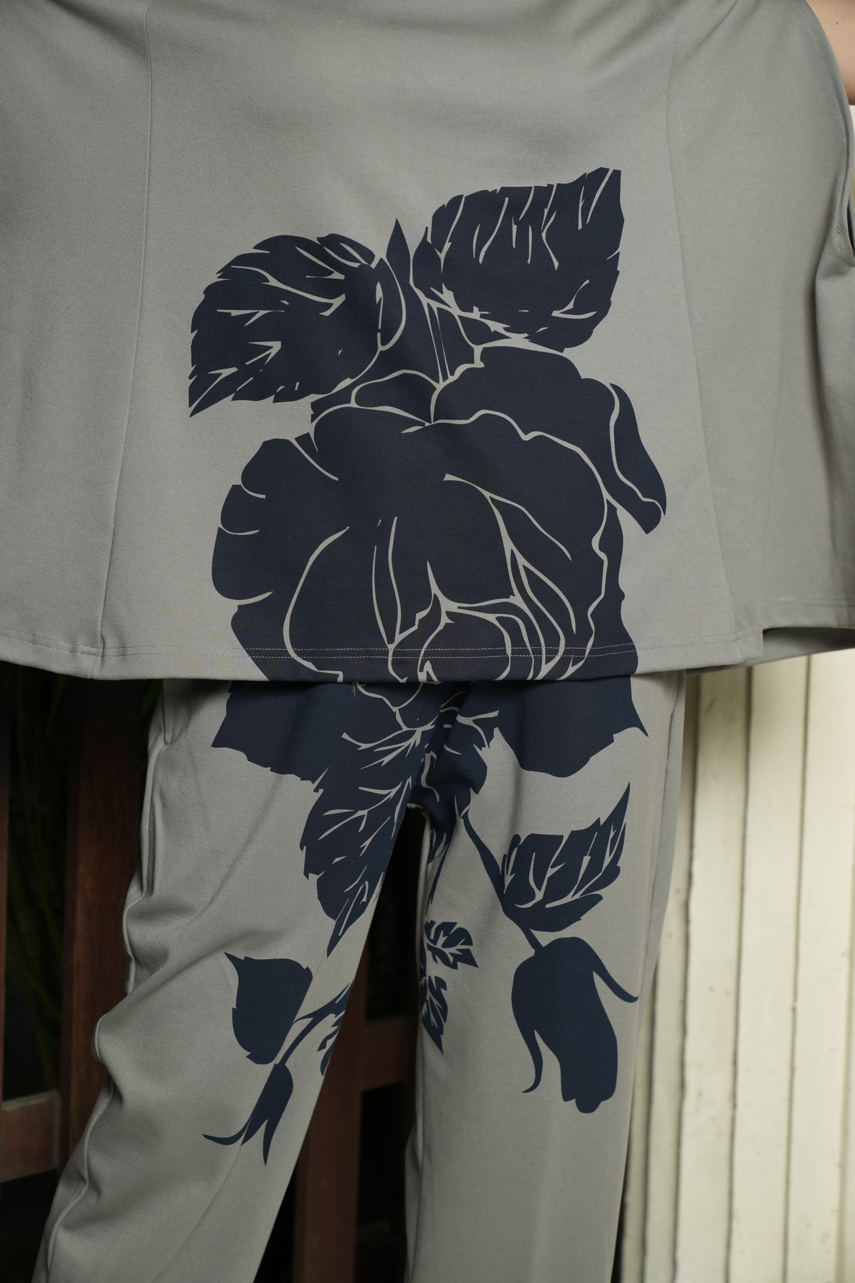 Grey symmetrical print cape set